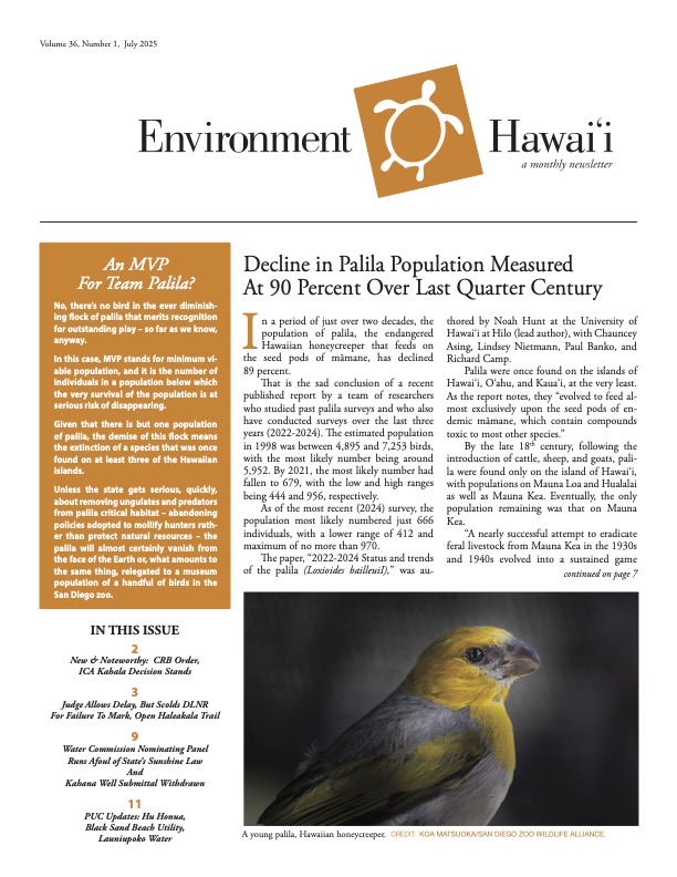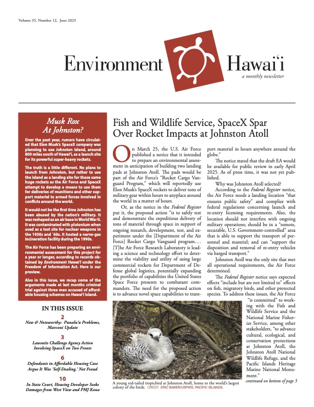 Also in this issue: an update on the Marconi development, news on the litigation over the Haleakala trail, the Supreme Court agrees to take on a dispute over East Maui water, and more fighting over West Maui water.